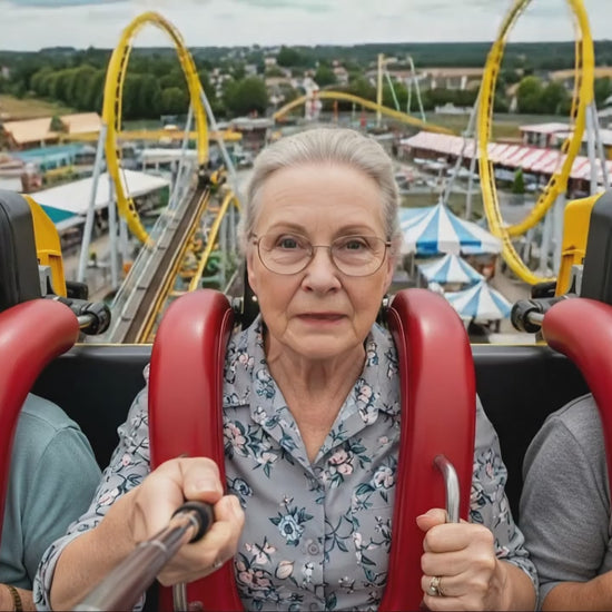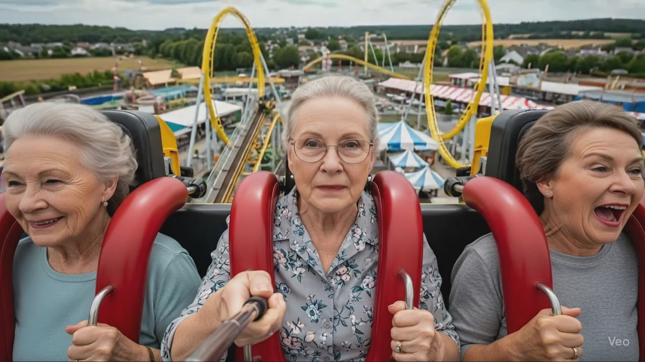 Eine Rentnerin fährt Achterbahn und grüßt dabei einen Freund für dich! Am Ende schreien sie. Ein lustiges und einzigartiges Video, das dir zur Verfügung gestellt wird.