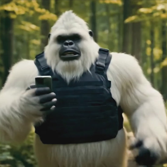 Ein Yeti mit kugelsicherer Weste und Handy in der Hand grüßt einen Freund für dich und flext am Ende mit seinem Bizeps! Ein lustiges und einzigartiges Video, das dir zur Verfügung gestellt wird.